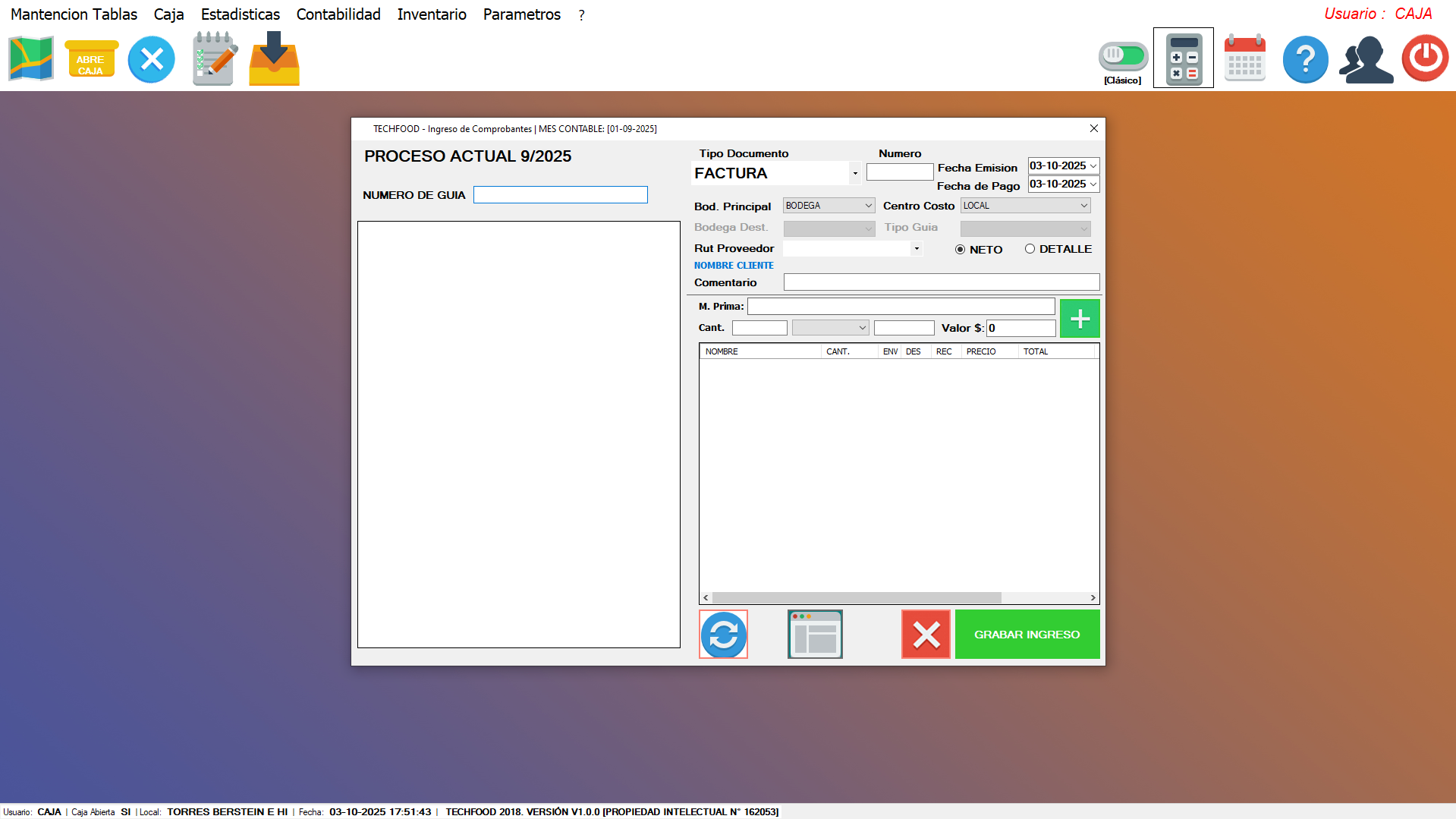 - Ingreso con lector de código de barras